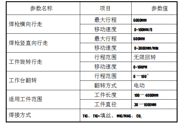 工件裝卡采用軸管中心孔三爪氣動卡盤定位,尾座氣動頂緊方式;工件回轉采用步進電機調速、恒轉矩輸出,速度平穩;機頭橫向和縱向電機采用伺服電機驅動,使用螺旋焊接范圍寬,速度平穩;尾座沿縱向可調,可適應多品種焊接。焊接實施等功能均由控制盒的按鈕實現,操作簡單,便捷,操作采用人機界面可進行參數的更改,數控焊接專機參數的修改可通過觸摸式按鍵,方便及時的輸入;該焊接專機以松下可編程序控制器為核心組成自動焊接控制系統,自動化程度高,提高工作效率,減少焊接變形。